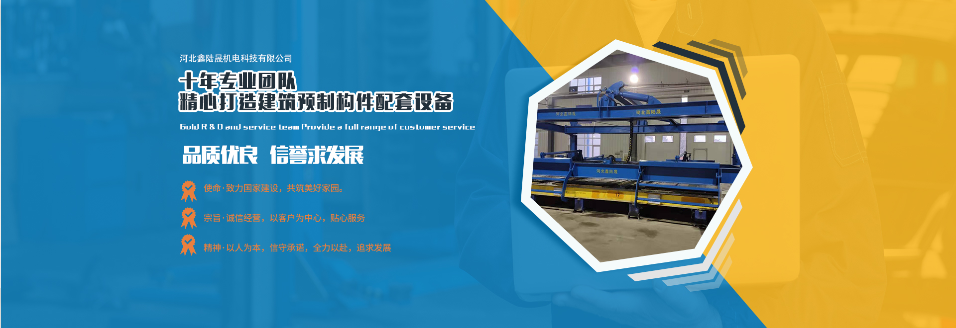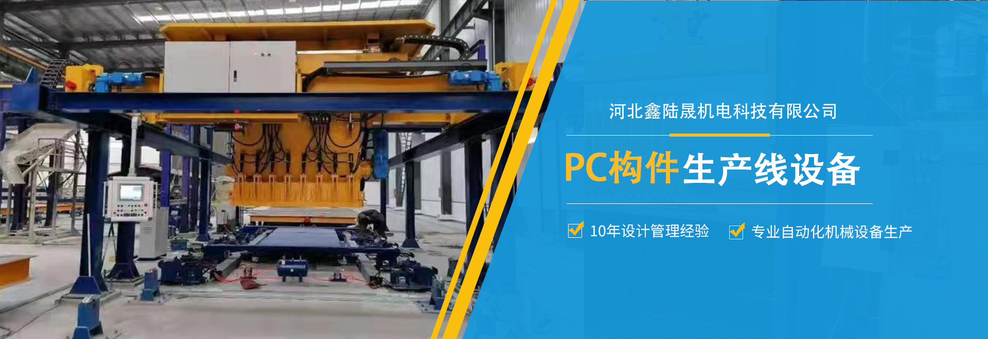 河北鑫陸晟機(jī)電科技有限公司是專(zhuān)業(yè)設(shè)計(jì)制造混凝土預(yù)制產(chǎn)品、PC構(gòu)件生產(chǎn)線(xiàn)、混凝土構(gòu)件布料機(jī)等設(shè)備的廠(chǎng)家。
